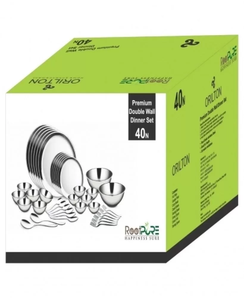 Orilton Double Wall Dinner Set of 40 pieces. The Dinner Set of 40 pieces is perfect for smaller families. The combo set will suit any type of table setting due to its elegant and shiny look. It can easily fit into your kitchen effortlessly and saves you a lot of space. Best for everyday use, this dinner set is made for generations. The utensils in this set can be used to have a perfect meal with your loved ones.