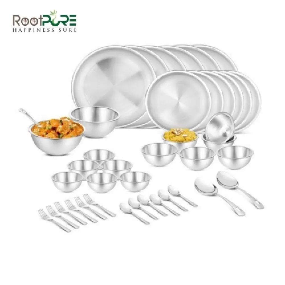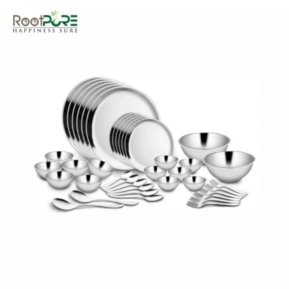 - Our 40-piece Dinner set is made of high-quality stainless steel.