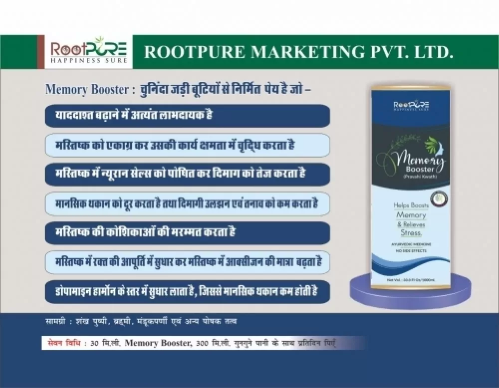 - Stress and Fatigue Reduction: Memory Booster effectively removes mental fatigue, reduces mental confusion, and provides relief from stress, creating a mental environment conducive to well-being.