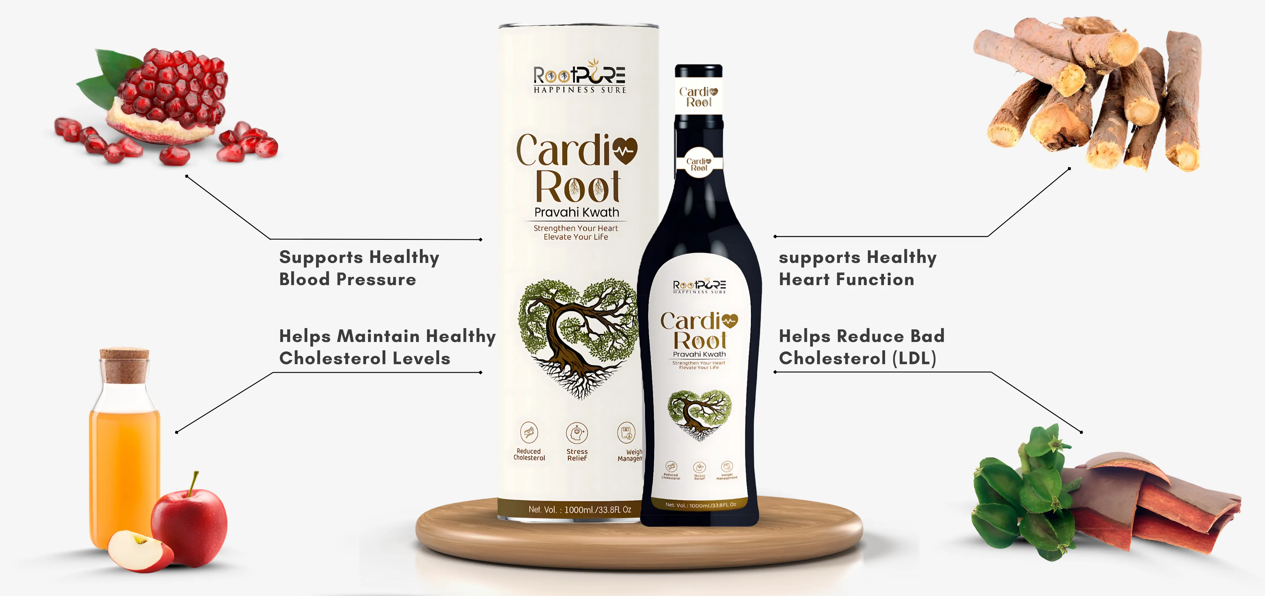 Rootpure Cardio Root Pravahi Kwath is a scientifically formulated blend designed to provide advanced support for cardiovascular health. Harnessing the synergistic benefits of potent natural ingredients, this innovative supplement combines traditional wisdom with modern research to deliver optimal heart support.